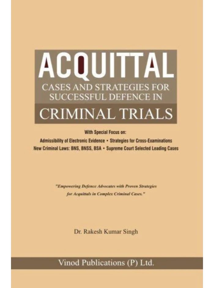 Acquittal Cases and Strategies for successful defence in Criminal Trials Edition 2025 provides a comprehensive, authoritative, and practice-oriented examination of its subject within the framework of Indian legal jurisprudence. The text methodically interprets statutory provisions and aligns them with landmark Supreme Court and High Court decisions, offering structured doctrinal clarity and courtroom applicability. It explains legislative intent, evidentiary principles, procedural safeguards, drafting standards, compliance mechanisms, jurisdictional challenges, limitation periods, appellate remedies, and litigation strategy in a cohesive manner. Judicial precedents are organized thematically to allow quick referencing during pleadings, cross-examination, arguments, and appellate submissions. The work highlights interpretative developments, constitutional safeguards, and evolving judicial approaches influencing contemporary litigation. Significant emphasis is placed on advocacy techniques, professional ethics, strategic planning, and avoidance of procedural errors. Digest-style analysis enhances usability while detailed commentary deepens conceptual understanding. Updated developments and recent case laws ensure reliability and professional accuracy. Ideal for Lawyers, Advocates, Prosecutors, Defence Counsel, Law Students, Judicial Aspirants, and Academicians, this volume strengthens analytical reasoning, refines drafting precision, enhances trial preparation, and supports appellate review. Serving as both scholarly reference and courtroom companion, the book ensures mastery of substantive principles and procedural dynamics critical for effective legal representation and examination success. Acquittal Cases and Strategies for successful defence in Criminal Trials Edition 2025 provides a comprehensive, authoritative, and practice-oriented examination of its subject within the framework of Indian legal jurisprudence. The text methodically interprets statutory provisions and aligns them with landmark Supreme Court and High Court decisions, offering structured doctrinal clarity and courtroom applicability. It explains legislative intent, evidentiary principles, procedural safeguards, drafting standards, compliance mechanisms, jurisdictional challenges, limitation periods, appellate remedies, and litigation strategy in a cohesive manner. Judicial precedents are organized thematically to allow quick referencing during pleadings, cross-examination, arguments, and appellate submissions. The work highlights interpretative developments, constitutional safeguards, and evolving judicial approaches influencing contemporary litigation. Significant emphasis is placed on advocacy techniques, professional ethics, strategic planning, and avoidance of procedural errors. Digest-style analysis enhances usability while detailed commentary deepens conceptual understanding. Updated developments and recent case laws ensure reliability and professional accuracy. Ideal for Lawyers, Advocates, Prosecutors, Defence Counsel, Law Students, Judicial Aspirants, and Academicians, this volume strengthens analytical reasoning, refines drafting precision, enhances trial preparation, and supports appellate review. Serving as both scholarly reference and courtroom companion, the book ensures mastery of substantive principles and procedural dynamics critical for effective legal representation and examination success. Acquittal Cases and Strategies for successful defence in Criminal Trials Edition 2025 provides a comprehensive, authoritative, and practice-oriented examination of its subject within the framework of Indian legal jurisprudence. The text methodically interprets statutory provisions and aligns them with landmark Supreme Court and High Court decisions, offering structured doctrinal clarity and courtroom applicability. It explains legislative intent, evidentiary principles, procedural safeguards, drafting standards, compliance mechanisms, jurisdictional challenges, limitation periods, appellate remedies, and litigation strategy in a cohesive manner. Judicial precedents are organized thematically to allow quick referencing during pleadings, cross-examination, arguments, and appellate submissions. The work highlights interpretative developments, constitutional safeguards, and evolving judicial approaches influencing contemporary litigation. Significant emphasis is placed on advocacy techniques, professional ethics, strategic planning, and avoidance of procedural errors. Digest-style analysis enhances usability while detailed commentary deepens conceptual understanding. Updated developments and recent case laws ensure reliability and professional accuracy. Ideal for Lawyers, Advocates, Prosecutors, Defence Counsel, Law Students, Judicial Aspirants, and Academicians, this volume strengthens analytical reasoning, refines drafting precision, enhances trial preparation, and supports appellate review. Serving as both scholarly reference and courtroom companion, the book ensures mastery of substantive principles and procedural dynamics critical for effective legal representation and examination success. Acquittal Cases and Strategies for successful defence in Criminal Trials Edition 2025 provides a comprehensive, authoritative, and practice-oriented examination of its subject within the framework of Indian legal jurisprudence. The text methodically interprets statutory provisions and aligns them with landmark Supreme Court and High Court decisions, offering structured doctrinal clarity and courtroom applicability. It explains legislative intent, evidentiary principles, procedural safeguards, drafting standards, compliance mechanisms, jurisdictional challenges, limitation periods, appellate remedies, and litigation strategy in a cohesive manner. Judicial precedents are organized thematically to allow quick referencing during pleadings, cross-examination, arguments, and appellate submissions. The work highlights interpretative de