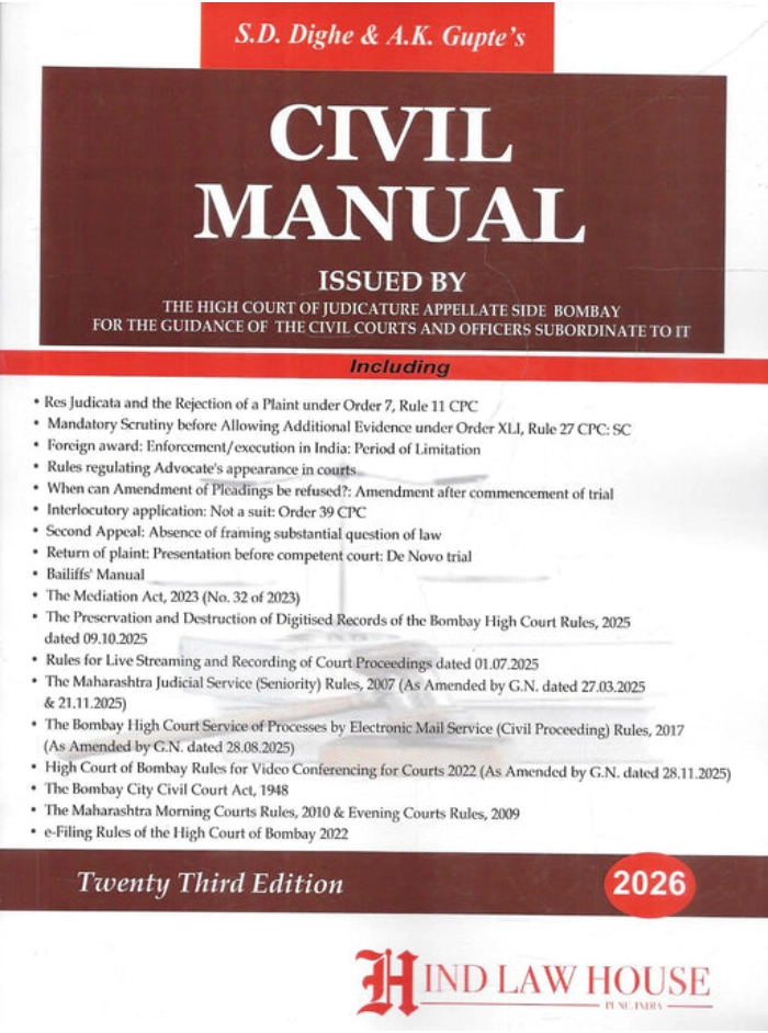The 23rd Edition Civil Manual compiles important rules, notifications, and amendments governing civil courts in Maharashtra. It includes updated High Court Rules, mediation framework, electronic service provisions, video conferencing rules, and revised procedural guidelines. Carefully arranged for ready reference, the manual assists judges and advocates in maintaining procedural accuracy. Incorporating the latest 2026 updates, it remains an essential administrative and litigation resource for subordinate courts and civil practitioners across the state.