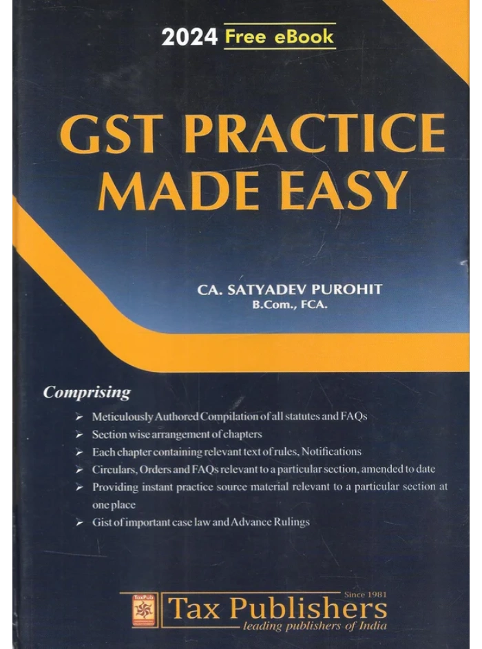 GST Practice Made Easy – Edition 2024 is a practical and comprehensive guide designed to simplify the day-to-day practice of Goods and Services Tax (GST) in India. The book focuses on the practical implementation of GST law, helping readers understand how GST provisions operate in real business scenarios. Written in an easy-to-understand style, the book explains essential GST procedures including registration, return filing, input tax credit, invoicing rules, tax liability determination, compliance requirements, and documentation. It provides clear guidance on the processes and responsibilities involved in GST practice, making it easier for professionals and businesses to comply with GST regulations effectively. The 2024 edition incorporates the latest amendments, notifications, and procedural updates introduced under the GST regime. By presenting complex tax provisions in a structured and simplified format, the book bridges the gap between statutory GST law and its practical application. Designed as a hands-on reference guide, the book helps readers resolve common GST issues encountered in professional practice. It serves as a valuable tool for understanding GST procedures, ensuring accurate compliance, and managing GST obligations efficiently. Whether used by tax professionals advising clients, business owners handling GST responsibilities, or students learning the practical aspects of GST law, this book offers clear explanations and reliable insights into the functioning of the GST system in India.