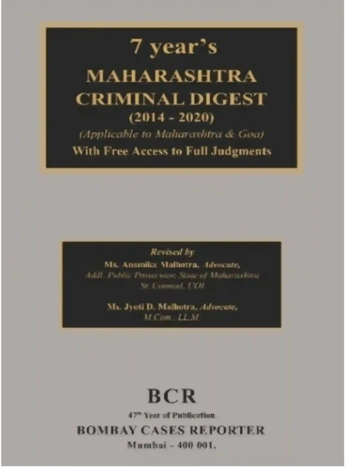7 Year’s Maharashtra Criminal Digest (2014–2020) is an indispensable reference guide for legal practitioners, students, and researchers working in the field of criminal law. Authored by Ms. Anamika Malhotra, Addl. Public Prosecutor for Maharashtra, and Ms. Jyoti D. Malhotra, Advocate, the digest compiles critical rulings, case precedents, and judicial interpretations applicable across Maharashtra and Goa. It provides full-text access to judgements, enabling users to closely examine how courts have interpreted statutes, applied procedural rules, and structured sentencing and bail decisions. The digest covers a broad spectrum of topics—criminal procedure, defence arguments, sentencing guidelines, police compliance, and appeals—making it a practical tool for legal reasoning and courtroom preparation. The case summaries are structured for easy navigation, allowing readers to quickly locate pertinent rulings and understand their implications. Designed to support civil services aspirants, law students, prosecutors, and advocates, this digest strengthens both theoretical understanding and applied practice. It bridges gaps between statutory texts and judicial application while offering expert insights drawn from years of courtroom experience. Whether used for exam preparation, case research, or advocacy, this digest is a reliable companion for navigating complex criminal law issues with confidence and precision.