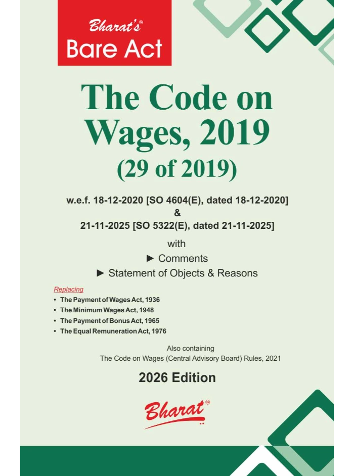 This book explains the Code on Wages, 2019, consolidating laws relating to minimum wages, payment of wages, bonus and equal remuneration. Updated for 2026, it provides practical compliance guidance, inspection mechanisms and penalty provisions, making it useful for employers and professionals.