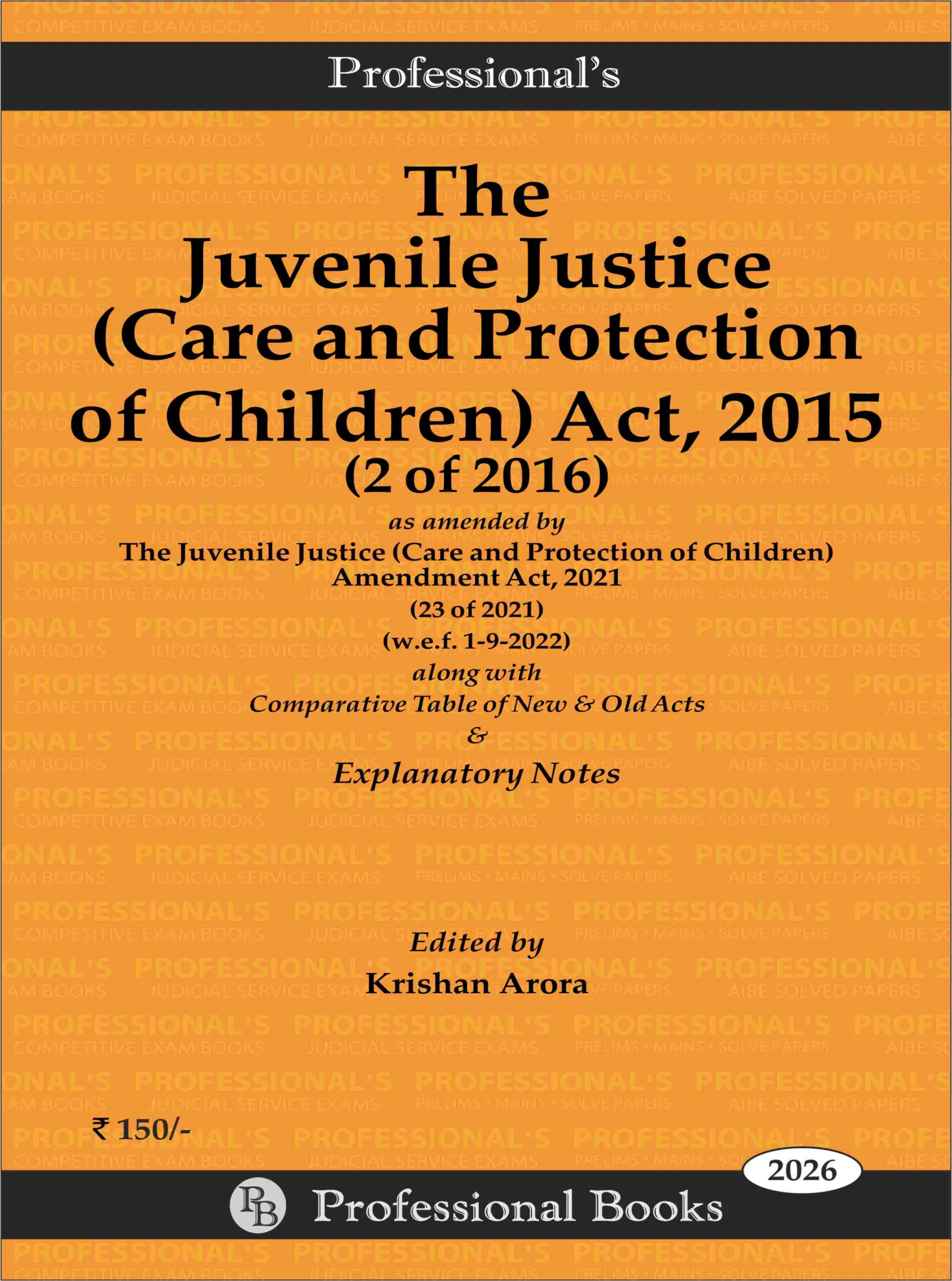 The Juvenile Justice (Care and Protection of Children) Act, 2015 is a comprehensive legal guide covering child protection and juvenile justice in India. The book systematically examines provisions related to children in conflict with the law, including apprehension, rehabilitation, and procedures followed by Juvenile Justice Boards and Child Welfare Committees. It also explains protective measures for vulnerable and at-risk children, adoption and foster care regulations, and the role of government and non-government agencies in child welfare. Judicial interpretations, landmark cases, and practical examples illustrate the implementation of the Act and its impact on social justice. Special emphasis is given to rehabilitation, reformation, and reintegration of juveniles, ensuring both compliance with statutory mandates and protection of children’s rights. Written in a clear and structured style, the book is an indispensable resource for law students, child rights advocates, social workers, judiciary aspirants, and professionals working in juvenile justice and child welfare systems.