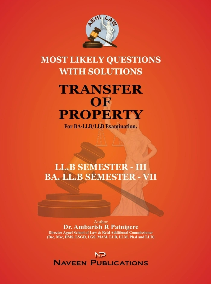 Most Likely Questions with Solutions — Transfer of Property is a focused study companion for undergraduate law students preparing for the Property Law/TPA paper. Designed around university examination patterns for LL.B Semester III and BA LL.B Semester VII, the book highlights the areas that are most frequently tested and demonstrates how to construct high-scoring answers. Coverage spans foundational principles (transfer, interest in property, conditional transfers, vested vs. contingent interests, transfer to unborn person, election, apportionment, rule against perpetuity, part performance, lis pendens) and the major modes of transfer—sale, mortgage, lease, exchange, gift and actionable claims. Each question is followed by a structured solution that models issue identification, relevant statutory provisions (TPA/related doctrines), and a concise conclusion—ideal for timed exams. Authored by Dr. Ambarish R. Patnigere, an experienced teacher and administrator, the book doubles as a quick-revision handbook, enabling last-minute brushing up of key definitions and distinctions. If you need a smart, practice-ready path to writing crisp answers, this is the one-volume guide to keep on your desk.