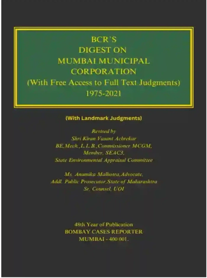 The BCR Digest on Mumbai Municipal Corporation (1975–2021) compiles concise headnotes and practitioner-focused summaries of the most important municipal corporation decisions spanning 1975 through 2021. Each entry gives the ratio, citation pointer and cross-reference to the full report and is arranged with a searchable topical index and table of cases. Expert editorial notes and free access links to full-text judgments make this digest a practical tool for courtroom citation, municipal counsel and academic research.