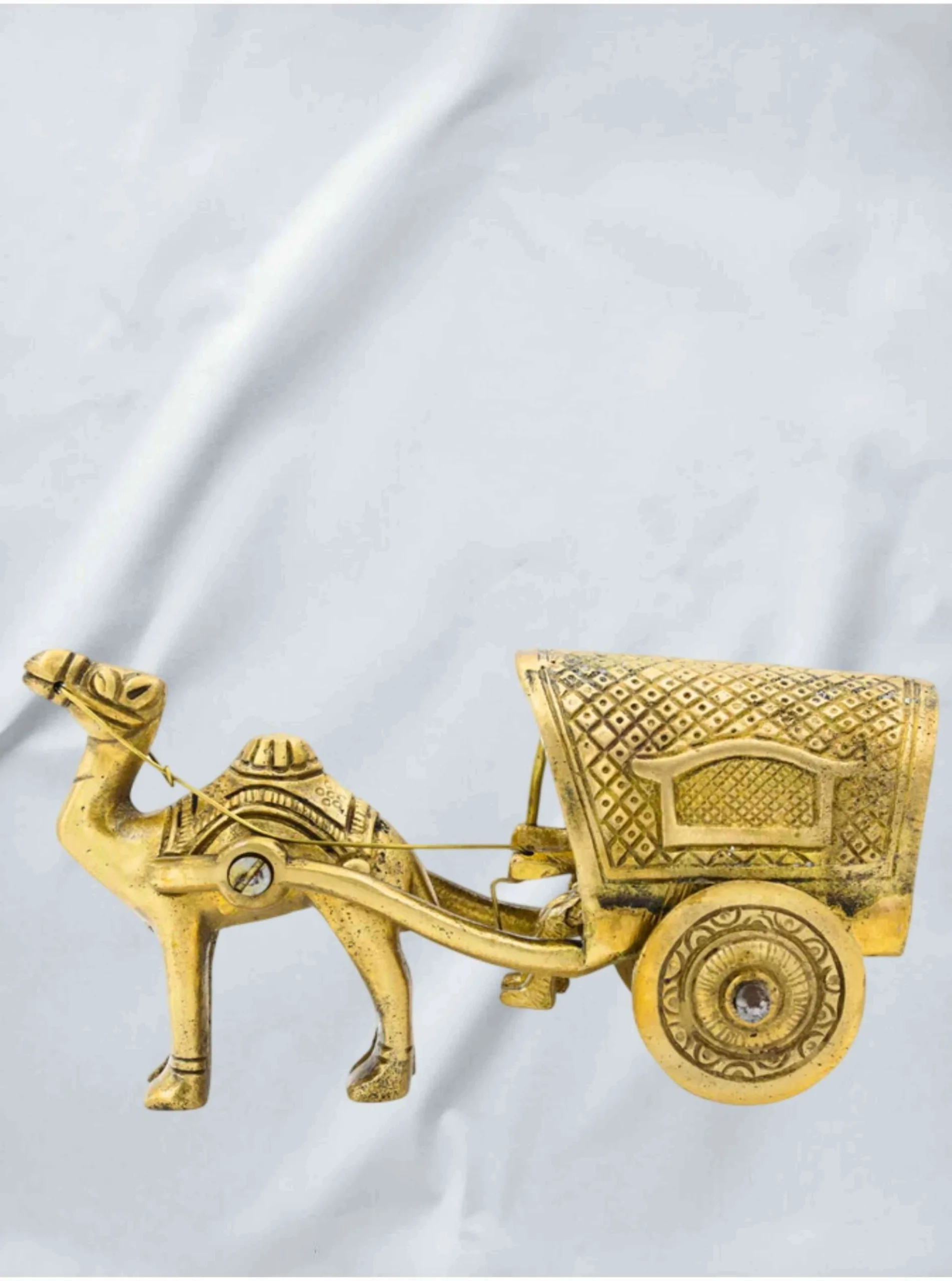 Brass Camel Cart Sculpture — Handcrafted Ethnic Tabletop Decor