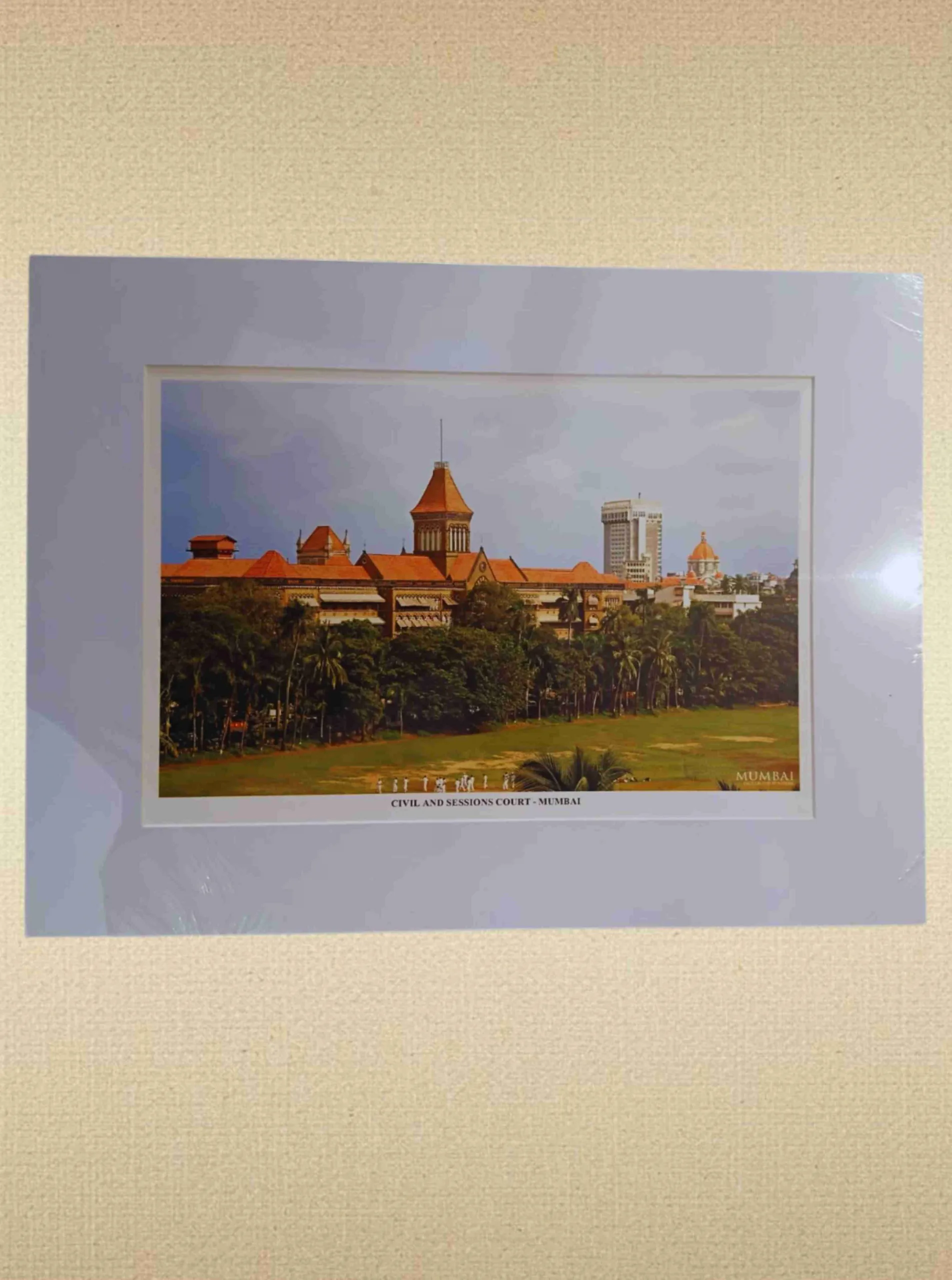 This mounted frame artwork showcases a detailed photographic view of the Civil and Sessions Court, Mumbai. The wide mount and refined presentation enhance the architectural elegance and institutional importance of the building. It serves as a dignified décor piece for professional and academic legal spaces.
