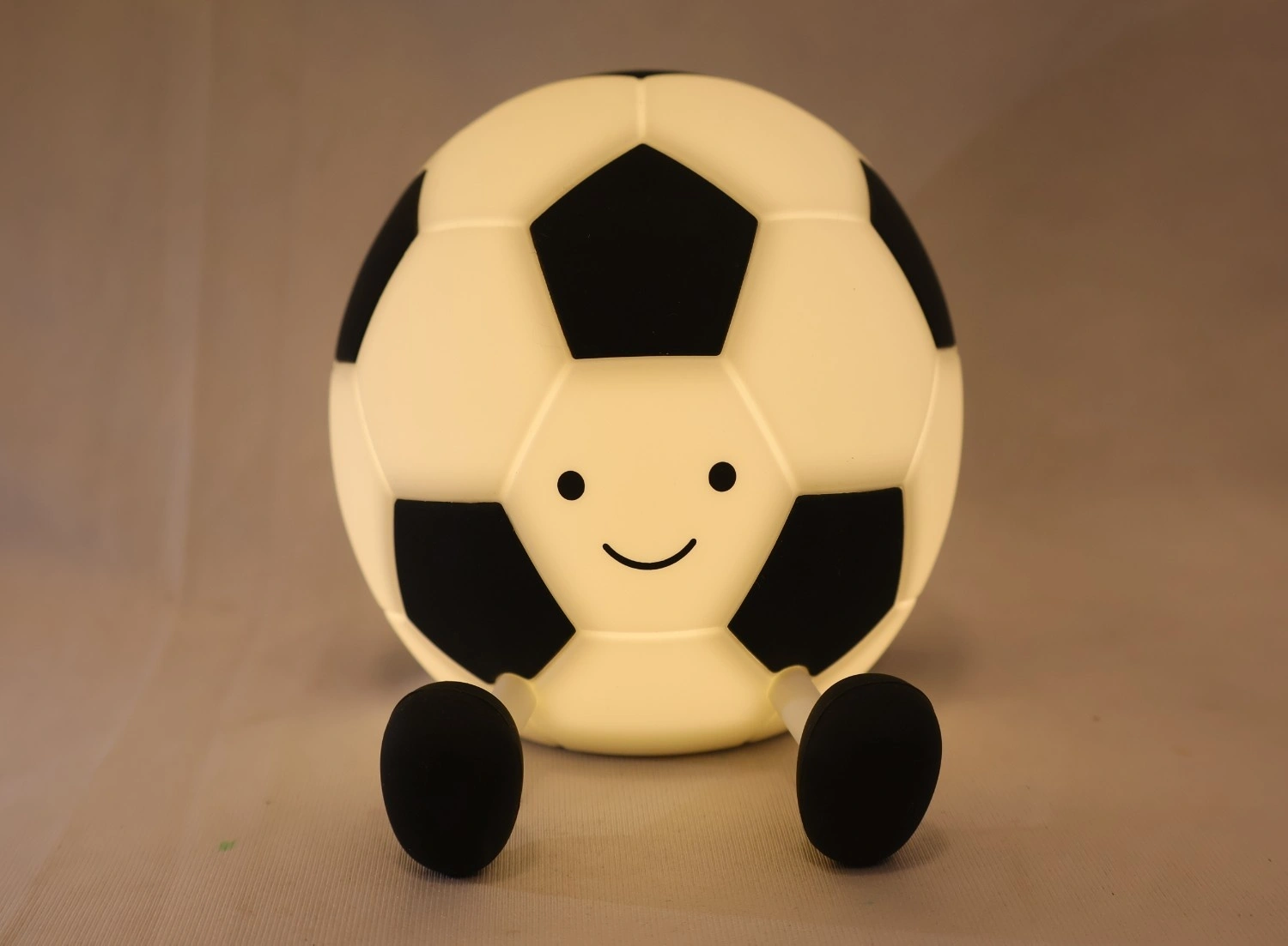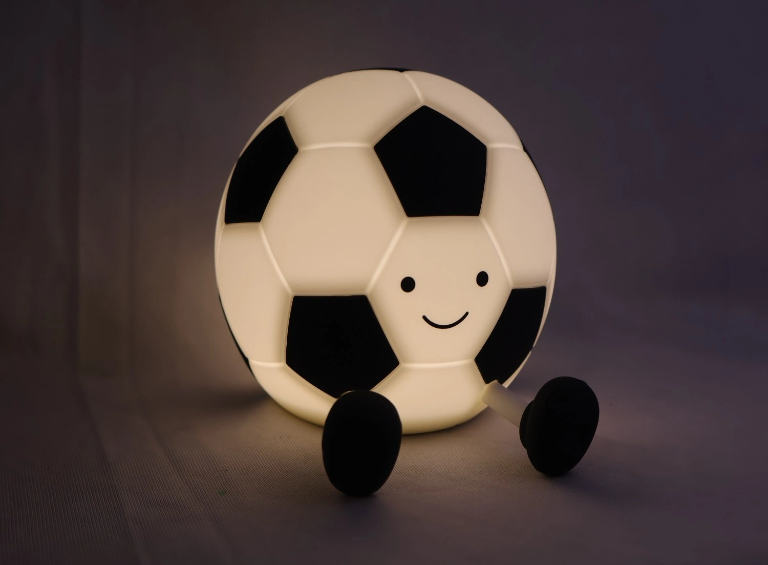 Light up playtime and bedtime with the Glowing Football Table Lamp ? a charming, soccer-ball shaped LED nightlight designed for kids, nurseries, and sports fans. The lamp?s soft silicone shell and friendly face create a comforting glow that?s bright enough to read by yet gentle enough to help children fall asleep. Powered by an internal rechargeable battery, it offers cordless portability for bedside, shelf, or travel use; simple touch controls let you toggle power and cycle warmth/brightness levels without fumbling for switches. The stubby removable legs/feet provide stable placement and a playful look while protecting surfaces from scratches. Built with child-safe materials and low-heat LEDs, the lamp is ideal for toddlers and younger kids ? it?s durable, non-toxic, and meets everyday household use. Use it as a decorative accent in a sports-themed bedroom, a nightlight for nighttime reassurance, or a novelty gift for little football fans. Compact, easy to charge, and picture-perfect for social posts, this lamp blends function and personality: it?s both a practical light source and a cute collectible that brightens any room.