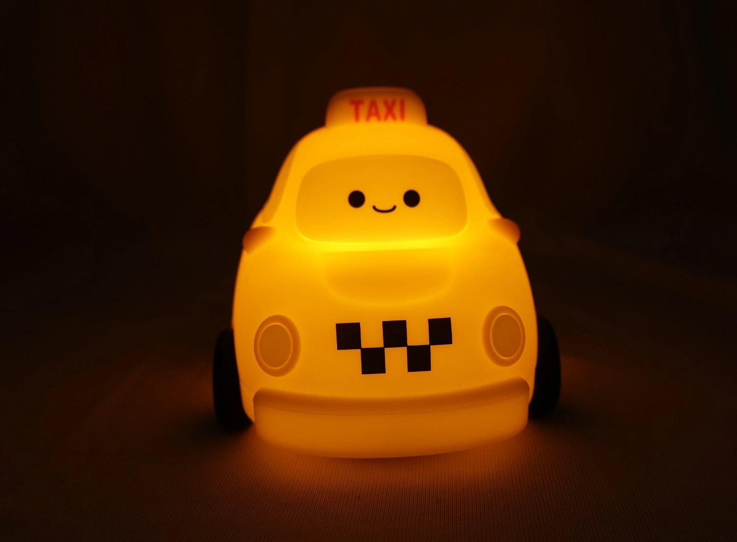 The Glowing Taxi Night Light is a delightful combination of function and charm ? a palm-sized, taxi-shaped lamp that emits a warm amber LED glow designed to be gentle on young eyes and create a calming bedtime atmosphere. Crafted with a soft, rounded silhouette and a friendly smiling face, this lamp doubles as playful nursery d?cor and a reassuring companion for toddlers who need light at night. Practical features include intuitive touch control (single tap to turn on/off, hold to adjust brightness), USB-rechargeable battery for hours of cordless use, and a durable, soft-touch exterior that?s easy to clean. Its compact footprint makes it perfect for bedside tables, shelves, or travel. Whether used as a nightlight for naps, a sleep-aid for anxious sleepers, or a decorative accent for a themed nursery, this taxi lamp blends child safety and whimsical design. It?s ideal for gifting ? baby showers, birthday presents, or ?first bedroom? essentials ? and designed to meet the needs of parents who want attractive, functional, and safe lighting solutions.