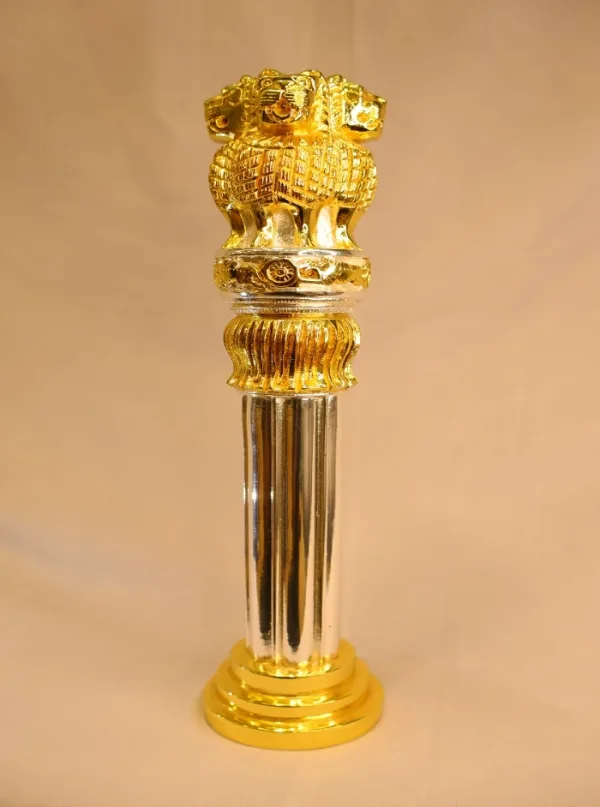 Add a touch of pride and elegance to your space with this Golden & Silver Ashoka Stambh, a stunning replica of India’s National Emblem – the Lion Capital of Ashoka. Expertly crafted with a high-gloss metallic finish, this piece blends traditional symbolism with modern sophistication. The golden lions represent power, courage, pride, and confidence, while the silver-toned pillar adds a luxurious, polished look. Perfect for office desks, corporate gifts, home décor, and patriotic displays, this Ashoka Pillar is a timeless tribute to India’s heritage and values.