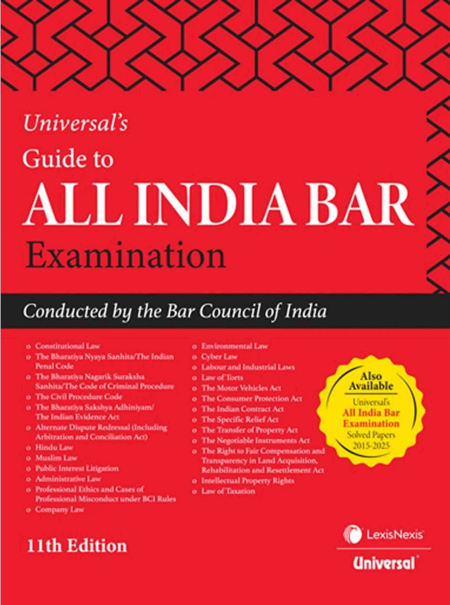 Universal’s Guide to All India Bar Examination (11th Edition) is a comprehensive and exam-focused guide designed to help law graduates successfully clear the AIBE conducted by the Bar Council of India. The book presents a structured and subject-wise coverage of all laws tested in the AIBE, making it an essential single-volume reference for bar aspirants.