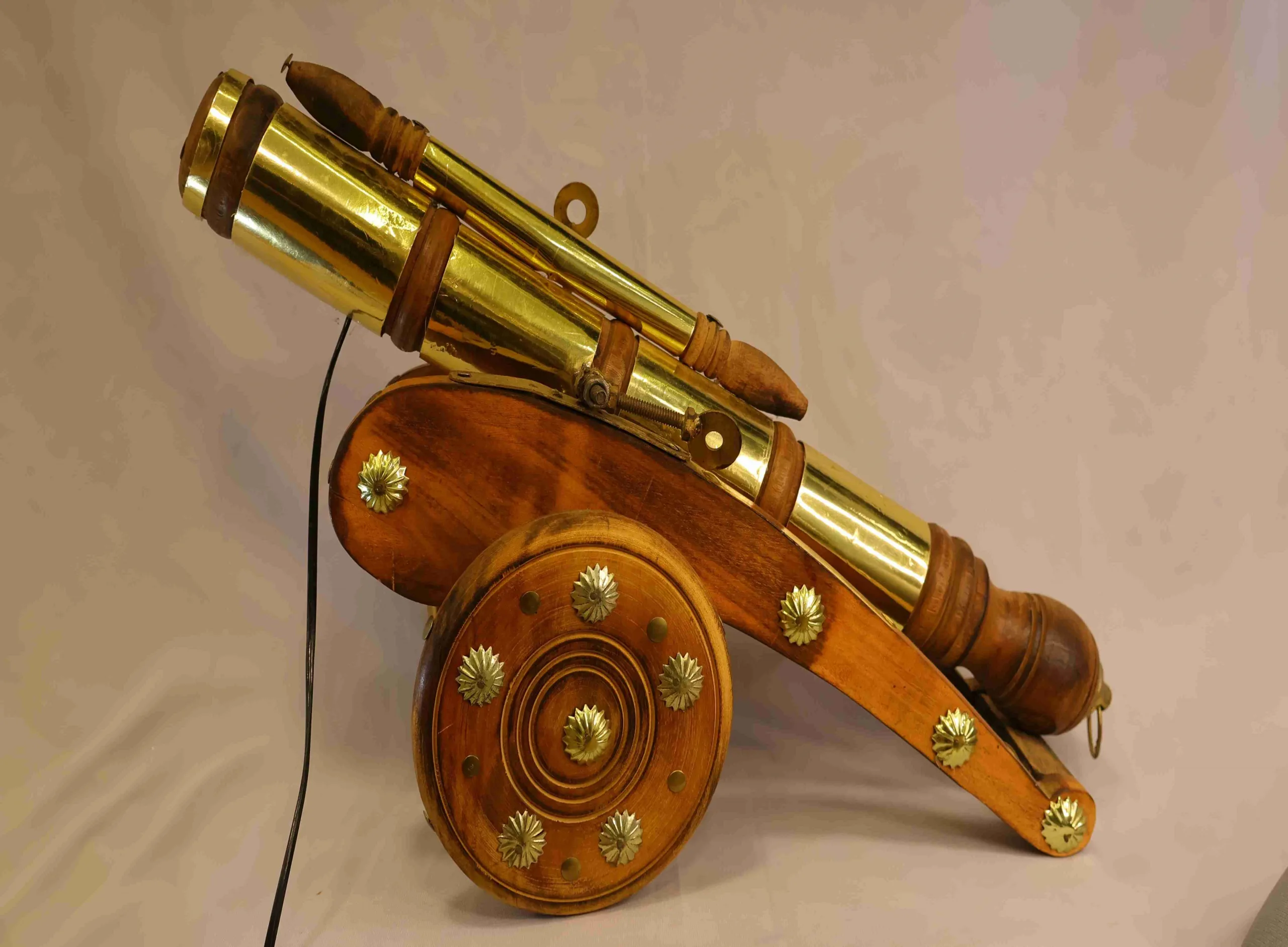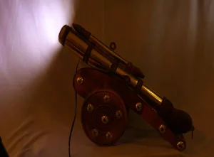 The Heritage Brass Cannon LED Lamp is a compact tabletop accent that combines vintage maritime charm with modern LED functionality. Meticulously finished in polished brass and mounted on a warm, carved wooden carriage, this miniature cannon captures the look of an antique naval piece while delivering bright, directional light for accenting bookshelves, desks, reception counters or themed displays. The integrated LED produces a crisp beam that highlights architectural details or objects on a mantel without the heat or energy draw of traditional bulbs. Decorative brass studs, turned wood elements and authentic-style metalwork complete the historic aesthetic — making it an eye-catching conversation piece for collectors, nautical enthusiasts and boutique hospitality venues. The lamp is compact enough for intimate spaces yet substantial enough to serve as a focal point. It arrives ready to use with a cord, inline switch and an easily accessible LED assembly.