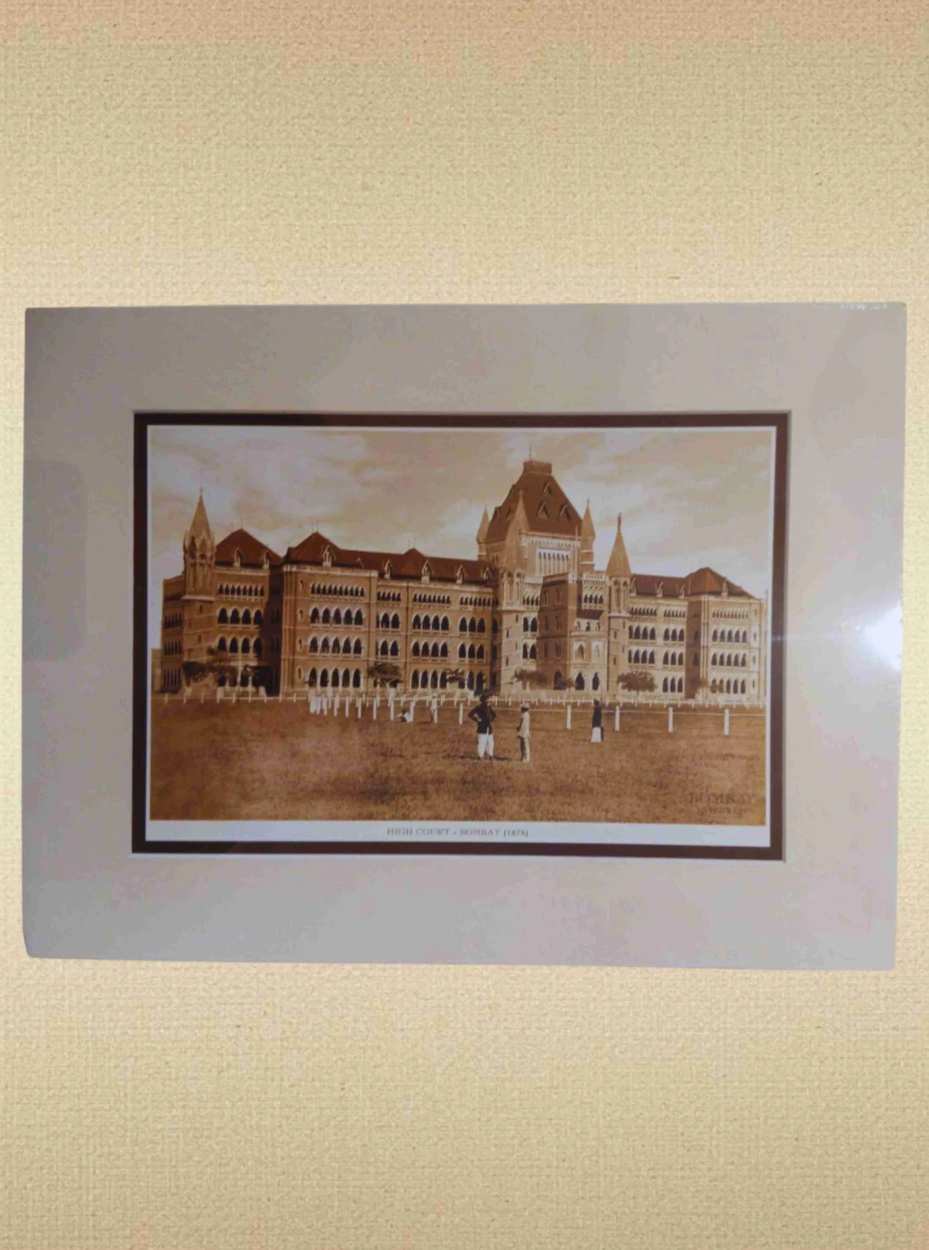 This mounted frame artwork features a historic photograph of the High Court of Bombay, dated 1878. The sepia-toned image captures the architectural grandeur and judicial legacy of one of India’s oldest high courts. It serves as a refined décor piece for professional and heritage-inspired spaces.