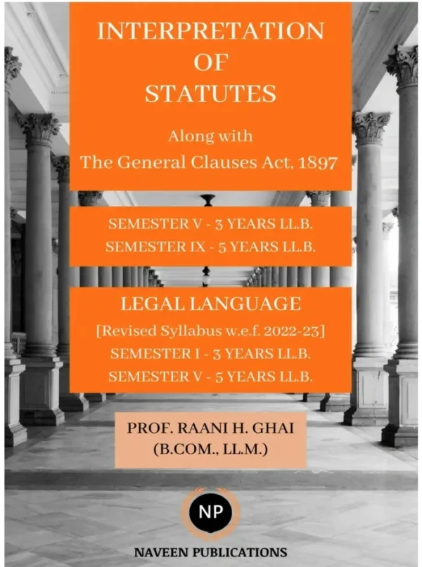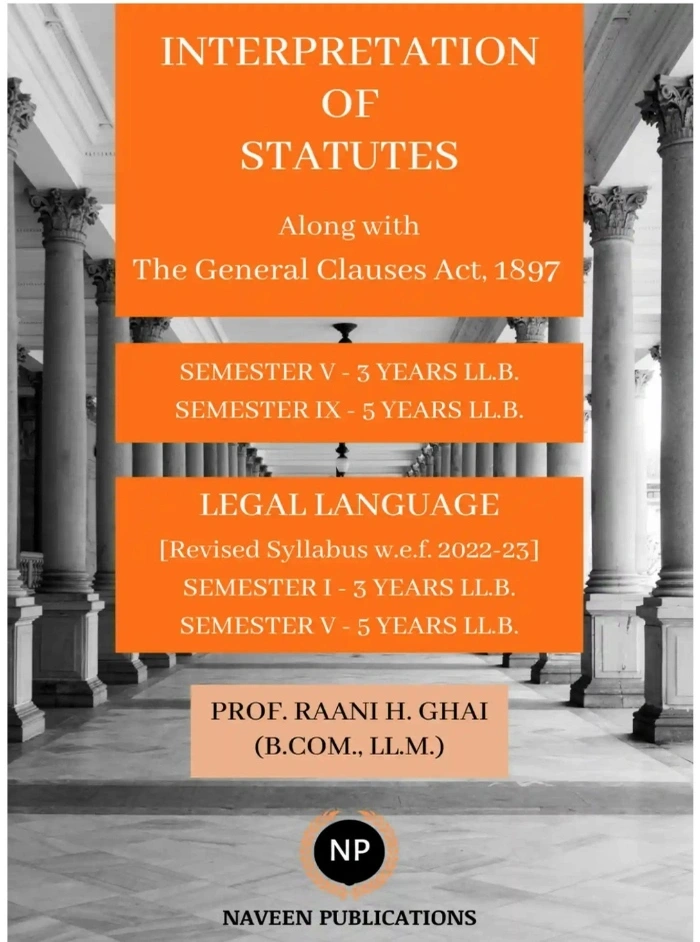 Interpretation of Statutes by Prof. Raani H. Ghai is a focused, exam-oriented companion to the LL.B. curriculum for Semester V (three-year) and Semester IX (five-year). Building from first principles, the book clarifies what statutes are and why interpretation matters, then systematically teaches the internal aids (titles, preambles, headings, marginal notes, definitions, provisos, explanations, non-obstante clauses, schedules) and the external aids (parliamentary history, historical facts, statements of objects and reasons, committee reports, dictionaries, foreign decisions) that courts actually use. It then shifts to interpretation by subject matter—beneficial and restrictive construction, taxing and penal statutes, welfare legislation, directory vs mandatory provisions, and substantive vs procedural rules—showing the logic behind each approach. A dedicated section on constitutional interpretation covers harmonious construction, pith and substance, colourable legislation, ancillary/incidental powers, occupied field, residuary power, prospective overruling, repugnancy (Art. 254), and eclipse, with Indian case law signposts. Maxims such as delegatus non potest delegare are illustrated through relatable examples to cement understanding. Tailored for quick revision and clarity, this is a practical study resource to grasp doctrines, structure answers, and score confidently in exams.