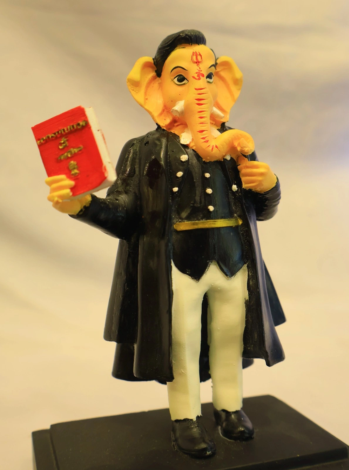 • Ganesha (Ganpati) figurine in black judicial robe holding Constitution