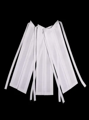 This 3-in-1 Lawyer Bands Packet contains three professionally finished white pleated bands designed to complete traditional courtroom attire for advocates, barristers and law students. Each band is crafted from lightweight, wrinkle-resistant fabric with neat pleats and reinforced stitching at the tie points for secure fastening and long-term durability. The included ties are long enough for easy adjustment and provide a clean, symmetrical look when worn with a gown or formal collar. The classic white color and crisp pleating preserve the dignity and formality required in courtrooms and academic graduations, while the material is chosen for comfort during long hearings. Supplied as a convenient packet of three, this set gives you backups for frequent use, quick replacements between cases, or matching sets for a team or chamber. Low-maintenance and easy to launder, the bands retain shape after repeated cleaning. Ideal for legal professionals who require consistent, professional presentation, it also suits law students preparing for court and exam ceremonies.