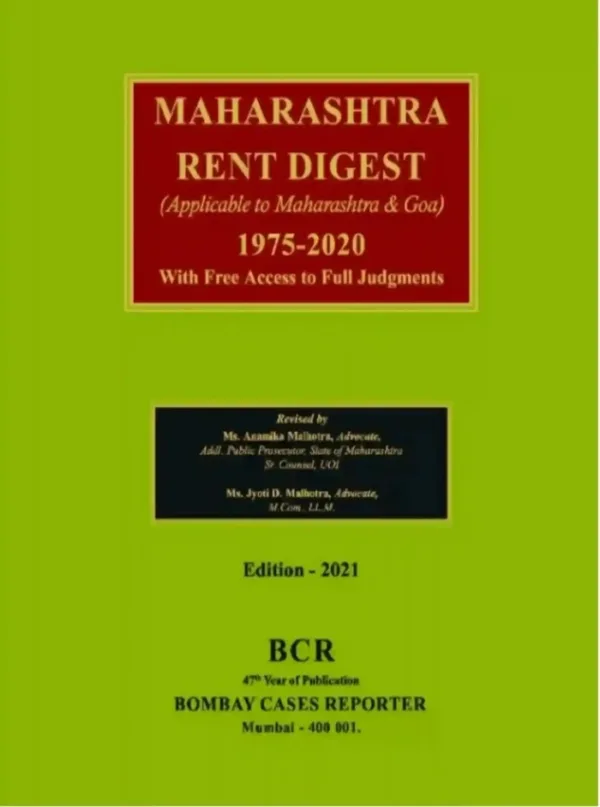 Maharashtra Rent Digest (Applicable to Maharashtra & Goa) 1975–2020 is a meticulously curated legal reference for professionals, students, and property stakeholders seeking clarity on tenancy laws. Revised by seasoned legal experts Ms. Anamika Malhotra and Ms. Jyoti D. Malhotra, this digest covers amendments, rent control provisions, eviction procedures, occupancy rights, and other tenancy-related frameworks for nearly five decades. The inclusion of free access to full judgements adds immense practical value, allowing readers to explore judicial interpretations and apply case law to real-world disputes. The digest addresses residential and commercial rent conflicts, offering structured explanations of landlord obligations, tenant rights, rent arrears, lease enforcement, and dispute resolution mechanisms. It also highlights statutory changes over the years and provides guidance on compliance, documentation, and court procedures. Designed for advocates, civil services aspirants, property managers, housing welfare officers, and students, this resource offers both doctrinal insights and practical tools. Whether used for legal research, courtroom advocacy, or tenancy management, the digest empowers readers to make informed decisions while navigating the complexities of rent law in Maharashtra and Goa.