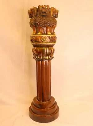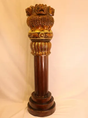Celebrate India’s glorious heritage with the Majestic Golden Lion Ashok Stambh, a beautifully handcrafted wooden masterpiece symbolizing power, pride, and justice. This premium edition features finely detailed lion faces with a bold, regal expression, setting it apart with its lifelike craftsmanship. The glossy black pillar with golden highlights enhances its royal aesthetic, while the polished golden lions atop the Ashoka Chakra embody India’s timeless ideals of peace and strength. Perfect for law offices, government spaces, educational institutions, or as a proud décor statement at home, this elegant stambh captures the spirit of national honor in every detail.