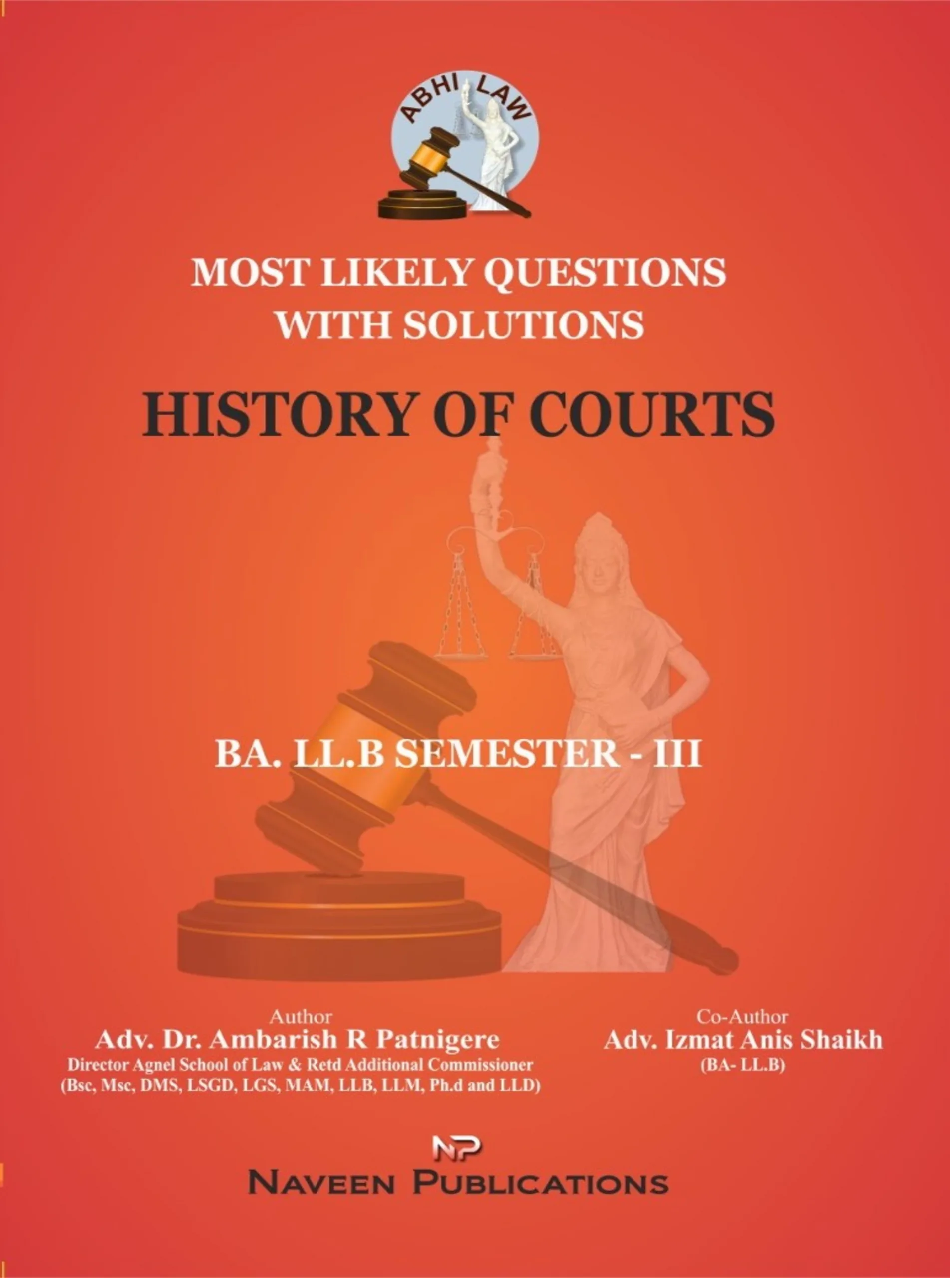 Most Likely Questions with Solutions — History of Courts is a concise, syllabus-aligned question bank crafted for BA LL.B Semester III students. Compiled and solved by Adv. Dr. Ambarish R Patnigere with co-author Adv. Izmat Anis Shaikh, the book distils the history and development of judicial institutions into the most likely exam questions and provides structured, marks-oriented answers. Coverage includes the origin and evolution of courts in India, pre-colonial and colonial judicial systems, development of subordinate and superior courts, the genesis of High Courts and the Supreme Court, judicial reforms, administration of justice, and comparative notes on foreign judicial systems where relevant. Each model answer focuses on definitions, chronological developments, landmark reforms, authoritative principles and short illustrative examples — all formatted for clarity and quick recall. Organized by topic for rapid navigation, the volume trains students in precise answer-writing under timed exam conditions and is equally useful as a classroom supplement or last-minute revision aid. Published by Naveen Publications, this resource is a practical tool to sharpen factual knowledge, contextual understanding, and exam technique for undergraduate law courses.