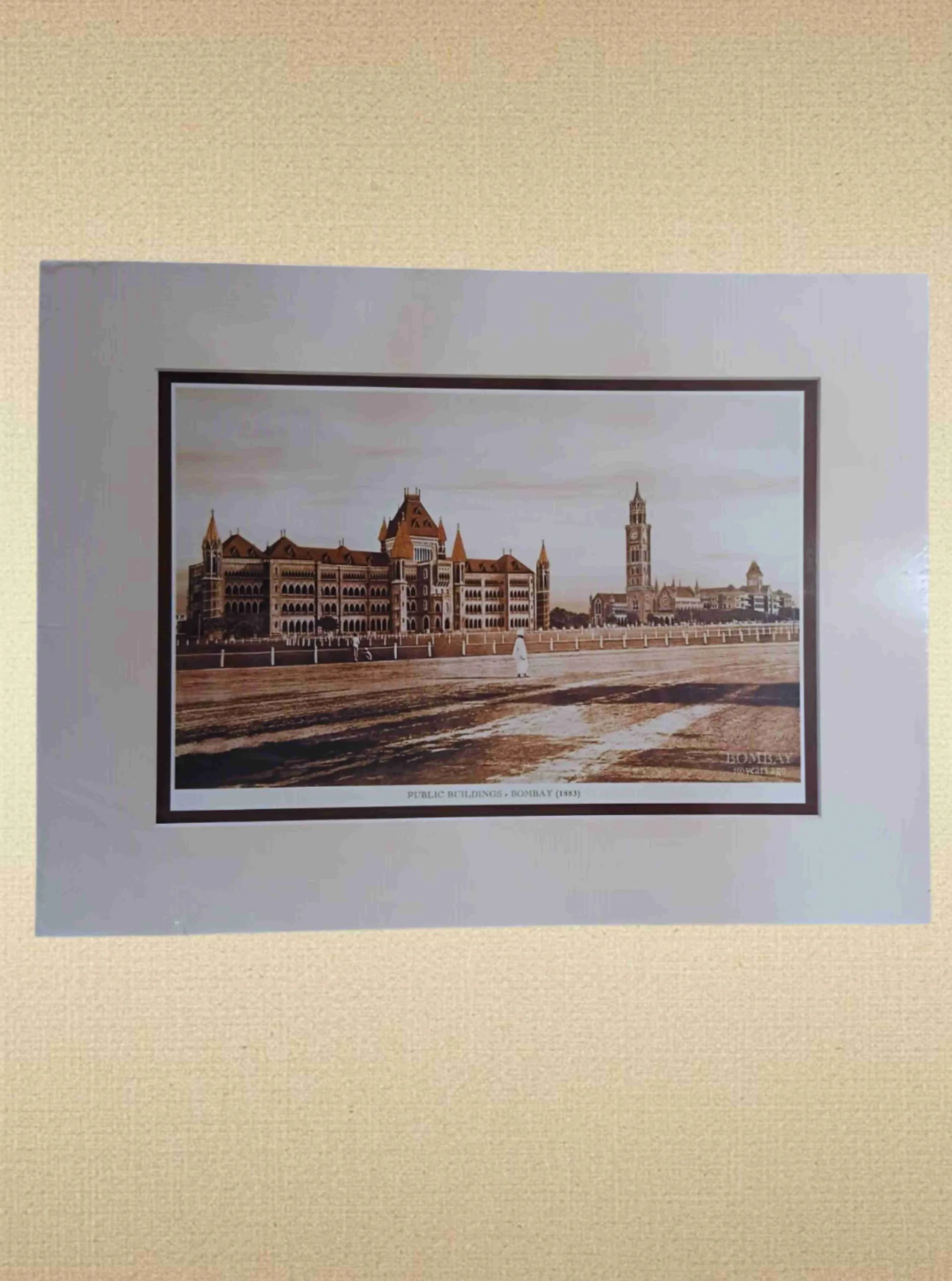 The Public Buildings as Seen from the Bandstand & Colaba – Bombay (1883) Mounted Frame is a distinguished wall décor piece that brings Bombay’s colonial past to life. Featuring a carefully reproduced vintage photograph, the artwork offers a panoramic view of public buildings and open landscapes as they appeared in the late 19th century.