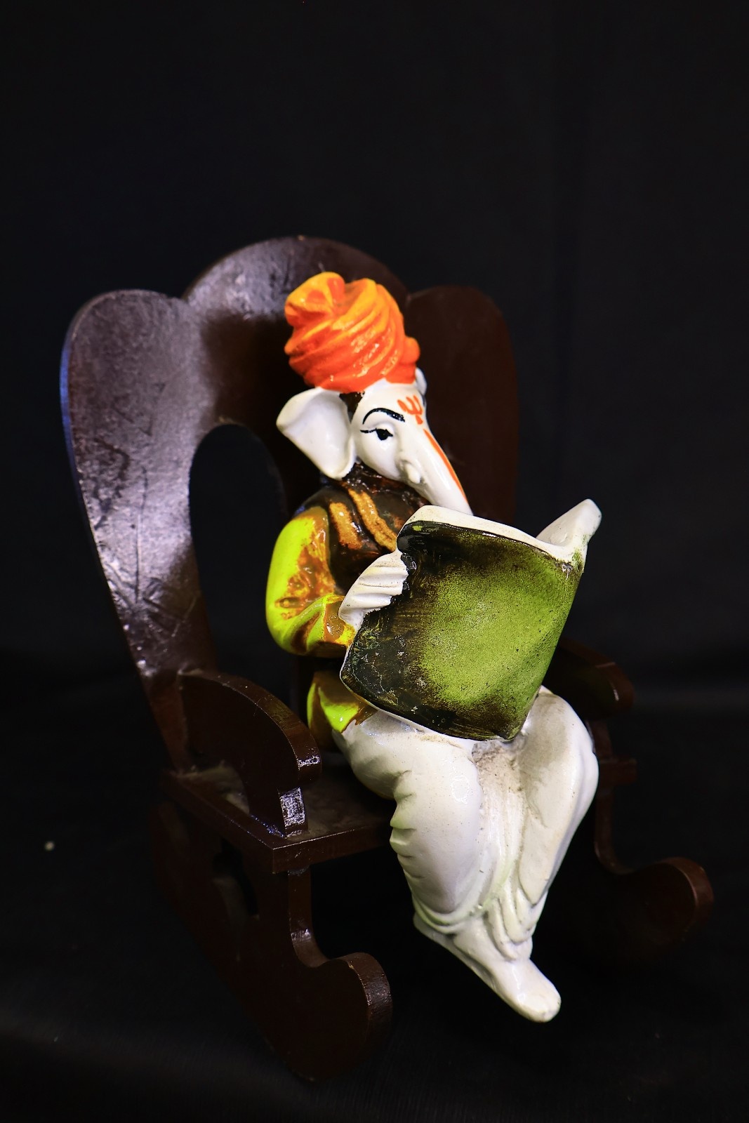 Reading Ganpati Statue — Ganesha in Rocking Chair