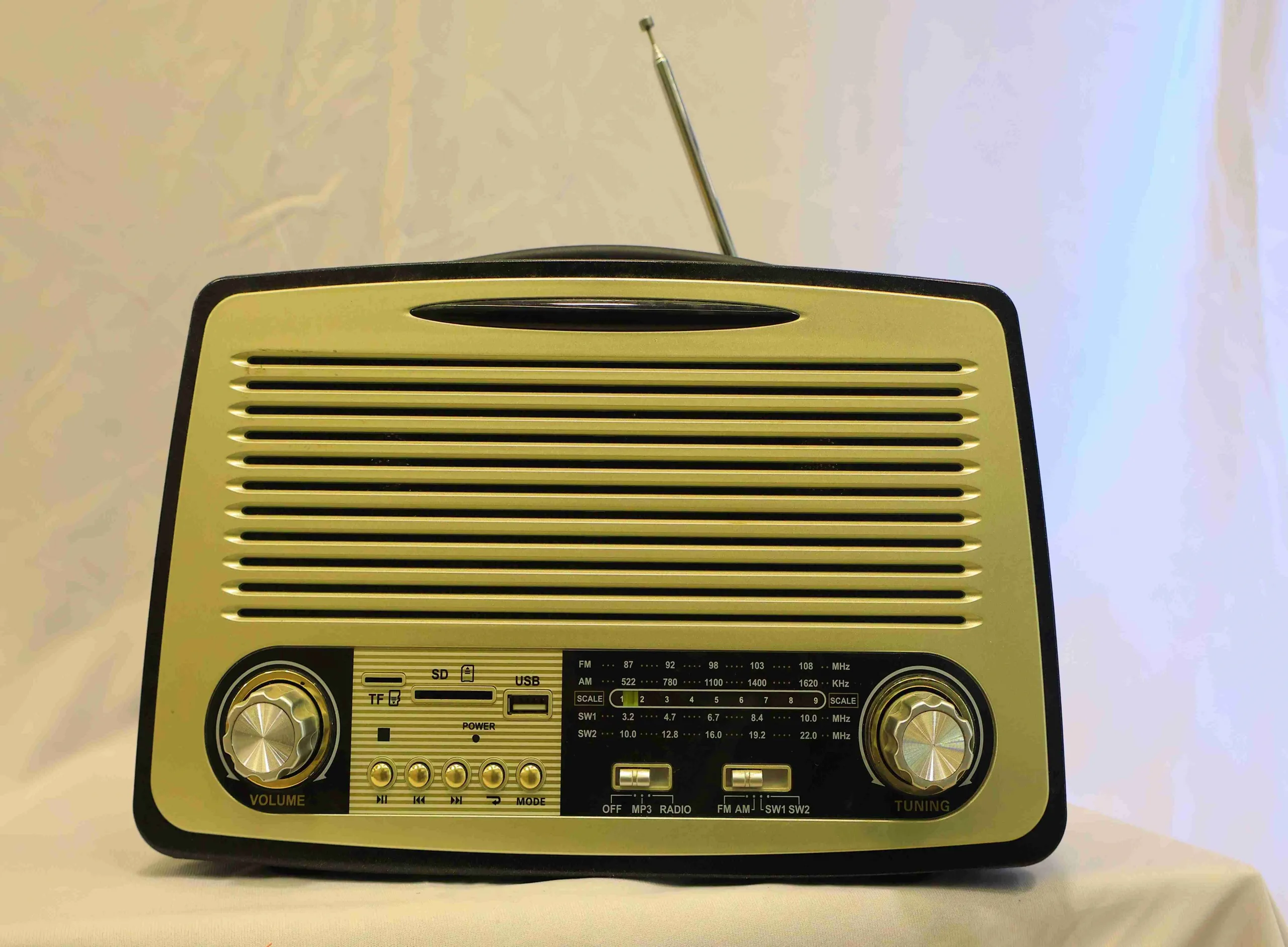 This retro-style portable radio pairs classic mid-century charm with modern playback convenience. The large front-facing speaker grille and tactile aluminum-look knobs deliver the visual and hands-on feel of an antique radio, while the built-in AM/FM tuner and telescopic antenna ensure clear radio reception. Modern inputs — a USB port and TF (microSD) slot — accept MP3 files so you can play your digital music collection without a phone; physical playback buttons allow simple track control and mode switching. The compact footprint and carry-friendly shape make it suitable for kitchens, bedside tables, home offices and small living spaces; the gold-and-black finish adds a warm, vintage accent to décor.