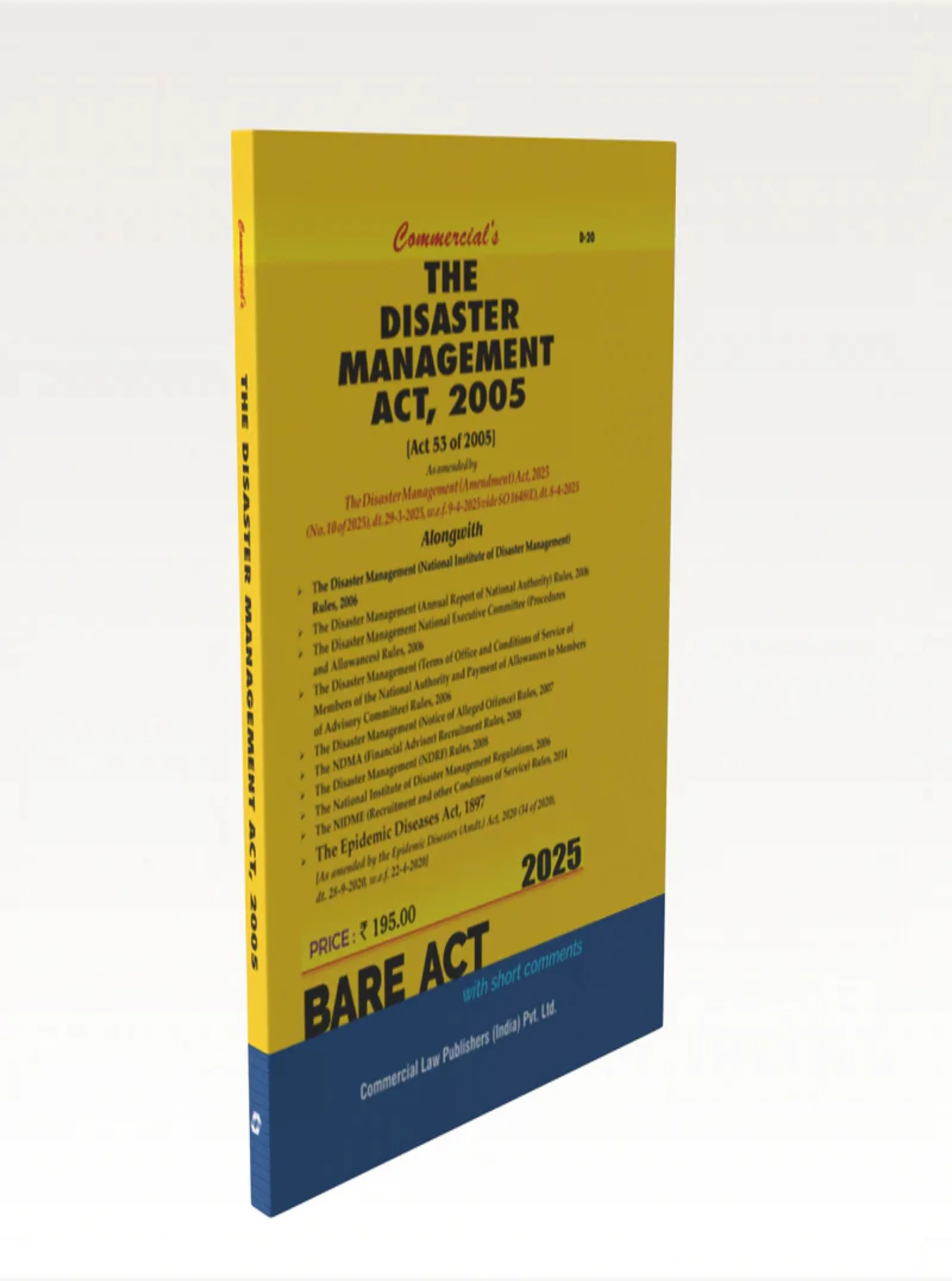 The Disaster Management Act, 2005 establishes a legal framework for effective disaster preparedness, mitigation, and response in India. It details the roles and responsibilities of central and state authorities, including the National Disaster Management Authority. This book provides an in-depth commentary on statutory provisions, rules, and practical guidance for implementing disaster management policies.