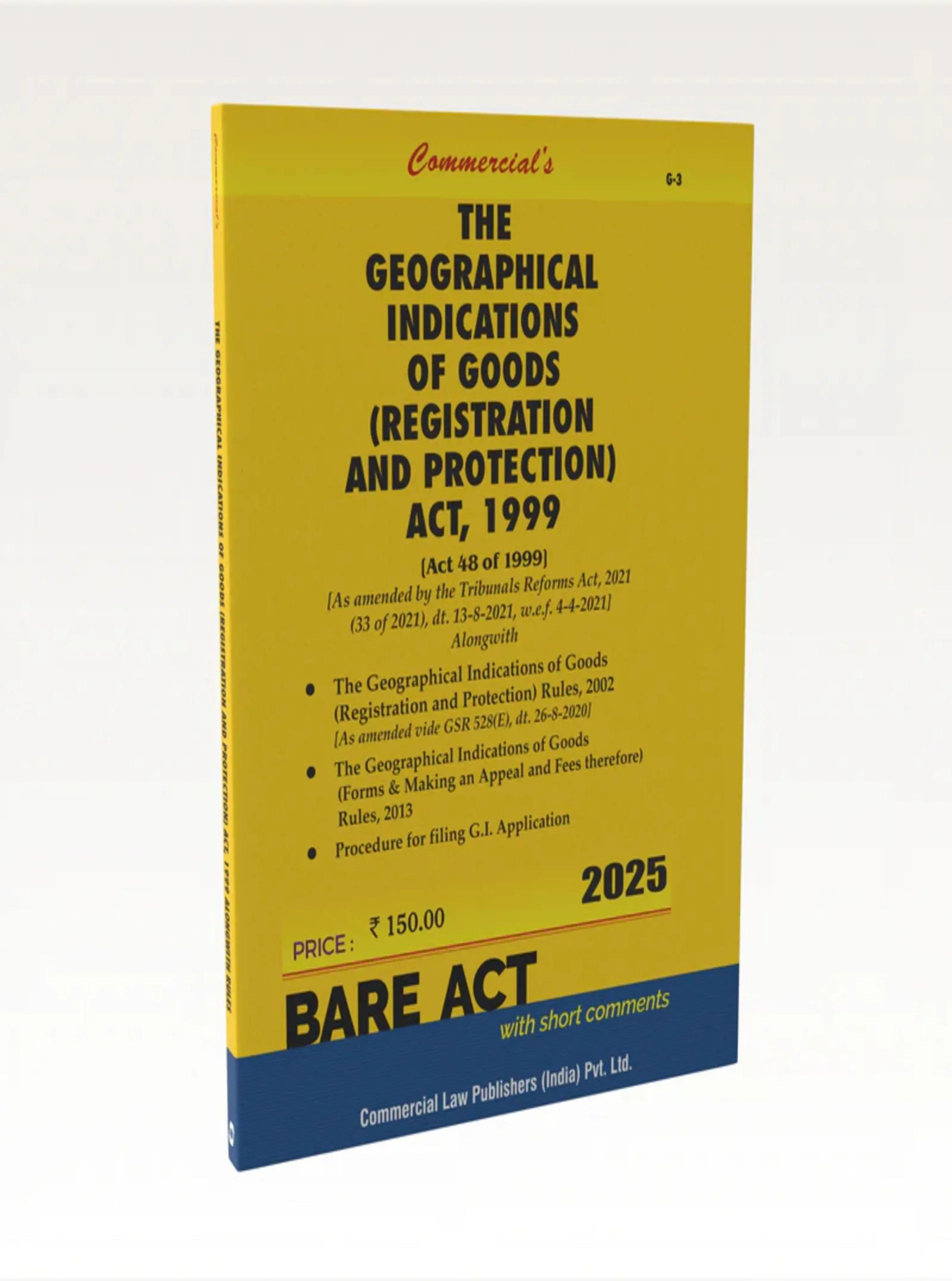 The Geographical Indications of Goods (Registration & Protection) Act, 1999 is a landmark legislation that provides legal protection to goods originating from specific regions, recognizing their unique quality, reputation, and characteristics. This book presents the Act comprehensively, detailing procedures for registration, rights conferred to GI owners, and enforcement mechanisms against unauthorized use or infringement.