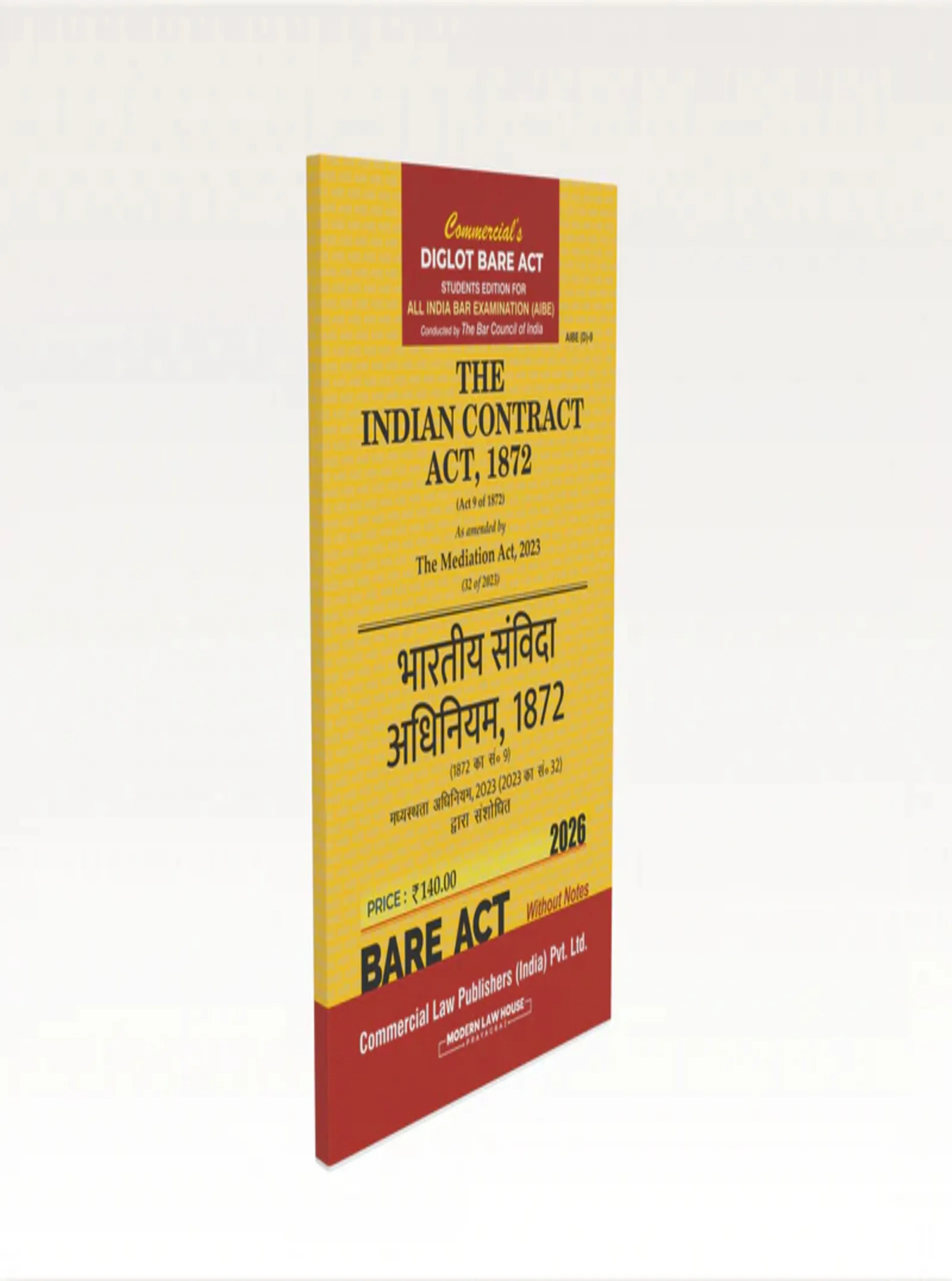 The Indian Contract Act, 1872 (AIBE) Diglot provides a dual-language commentary designed for legal professionals, law students, and AIBE aspirants. This bilingual edition presents all crucial provisions of the Act, including formation, offer and acceptance, consideration, contractual capacity, performance, breach, and remedies, with case law illustrations in both languages for enhanced comprehension.