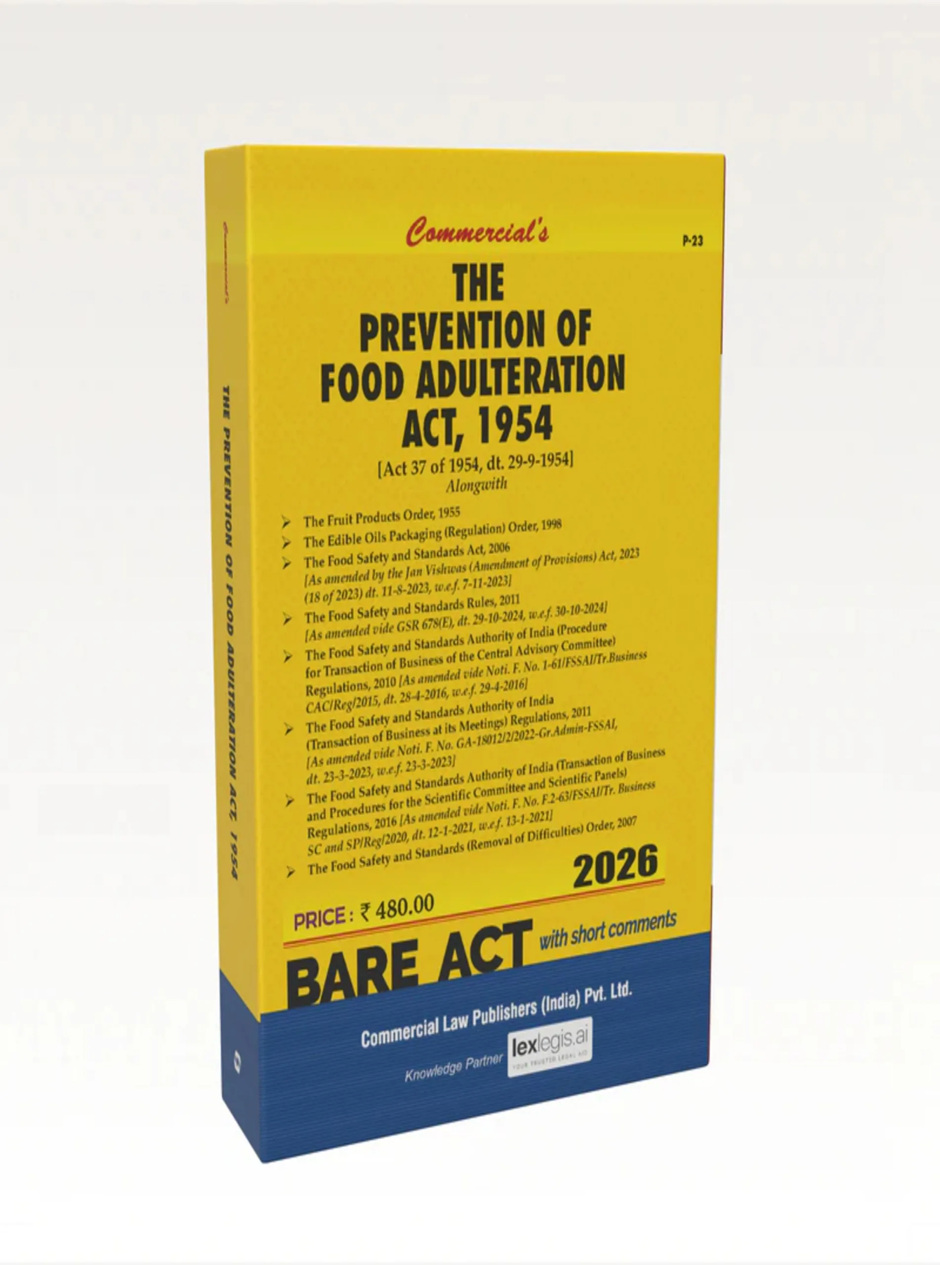 The Prevention of Food Adulteration Act, 1954 is a landmark legislation aimed at ensuring the purity, safety, and quality of food supplied to consumers in India. This book offers a comprehensive and practice-oriented analysis of the Act, explaining its objectives, scope, and statutory framework governing food safety regulation.