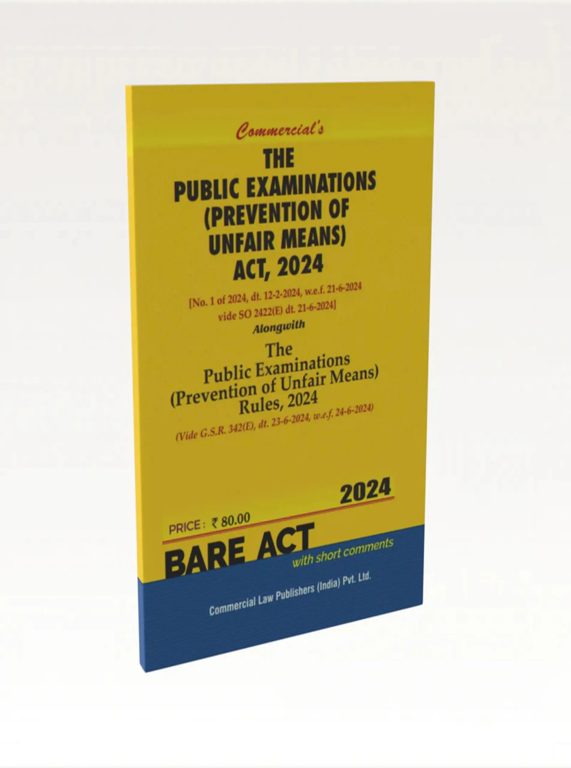 The Public Examinations (Prevention of Unfair Means) Act, 2024 is a landmark legislation designed to uphold integrity in India’s examination system by preventing cheating, fraud, and other unfair practices. This book provides a detailed commentary on the Act, explaining its objectives, legal provisions, and practical enforcement mechanisms.