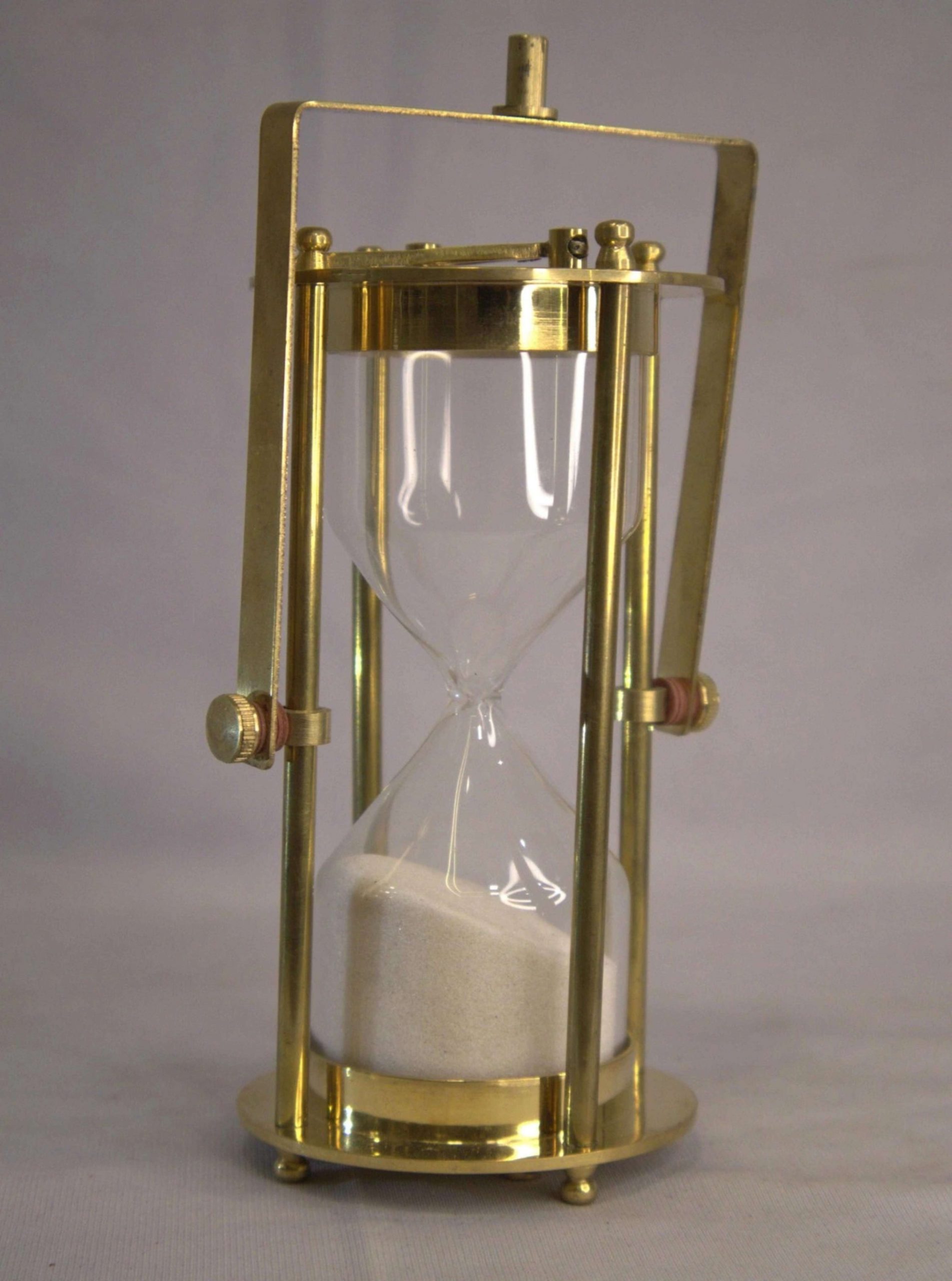 Vintage Brass Hourglass Timer with White Sand